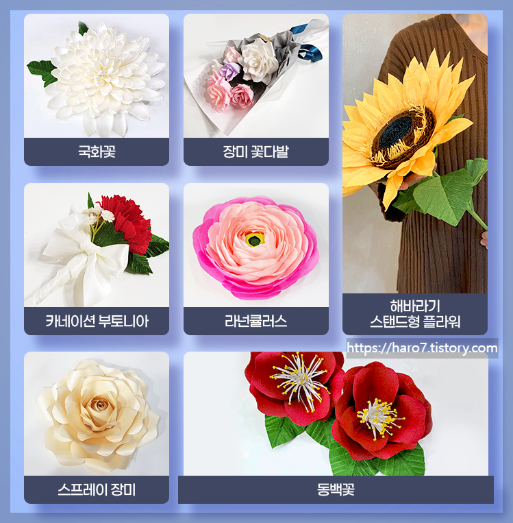 제작하는데요 일반 종이꽃에 비해서 크게 제작하는 것이 특징입니다.