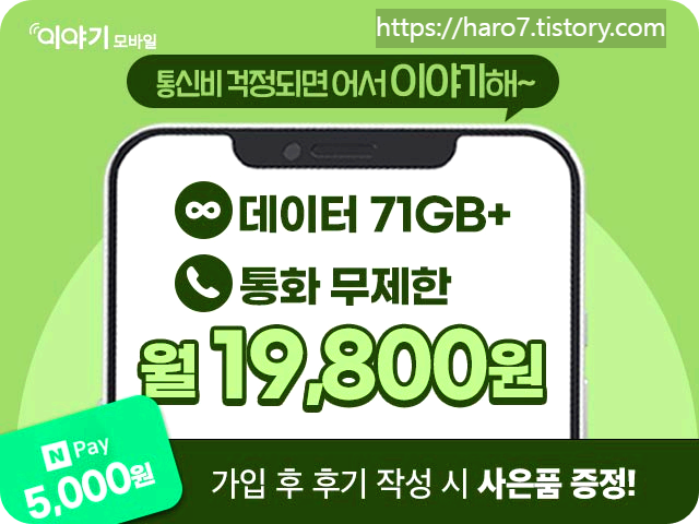 " 이야기 모바일 데이터 71GB 무제한 요금제 특가 "